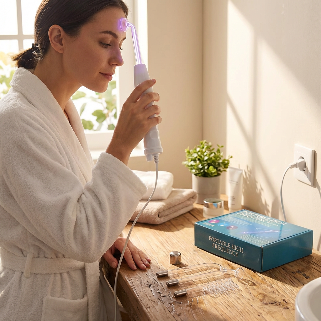 Transformez votre routine avec la Haute Fréquence utilisée en institut. Une micro-énergie ciblée qui calme l’inflammation